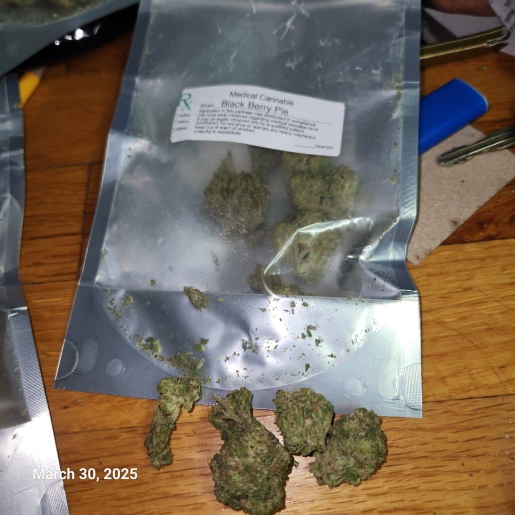 Blackberry Pie is a unique hybrid strain, perfectly balanced at 50% indica and 50% sativa. It is the result of crossing the well-known Joorizo’s Blackberry Widow with the powerful Crystal Locomotive. This strain delivers a remarkably strong high, despite its moderate THC content of 16-17%. The effects begin gradually, starting with a euphoric sensation that radiates from the neck and head. Users often experience a surge of creativity and a hint of motivation, making it suitable for artistic endeavors that do not require intense concentration. As the high intensifies, a soothing body sensation envelops you, promoting relaxation alongside a significant increase in appetite. Due to its effects and elevated THC levels, Blackberry Pie is frequently selected for alleviating issues such as cramps, nausea, loss of appetite, chronic pain, and inflammation. True to its name, Blackberry Pie offers a flavor profile reminiscent of fresh blackberries and nuts. Its aroma is rich and earthy, complemented by a spicy berry note. The buds are characterized by dark olive green hues with purplish undertones, dark amber hairs, and a layer of crystal trichomes that shimmer lavender under certain lighting.