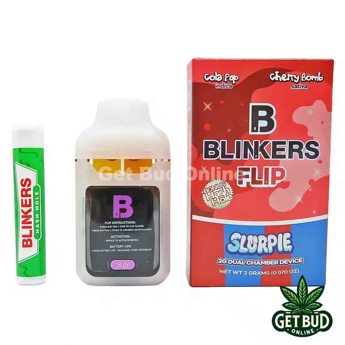 The Blinkers “Slurpie” line delivers a refreshing, flavor-forward vaping experience, combining high-potency THCA with smooth, terpene-rich profiles for a clean and satisfying draw. Built on their signature 2g Flip Dual Chamber platform, each device lets you switch between two distinct flavor profiles—offering a more dynamic and customizable experience in one sleek vape with fuller, more layered hits. Plus, each package includes a bonus hash hole pre-roll to round out the experience.