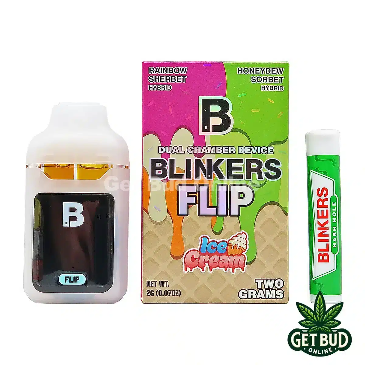 The Blinkers “Ice Cream” line delivers a dessert-inspired vaping experience, combining high-potency THCA with smooth, terpene-rich profiles for a rich and indulgent draw. Housed in their signature 2g Flip Dual Chamber format, each device lets you switch between a creamy, vanilla-style “ice cream” finish and a complementary strain profile—giving you two distinct experiences in one sleek vape.