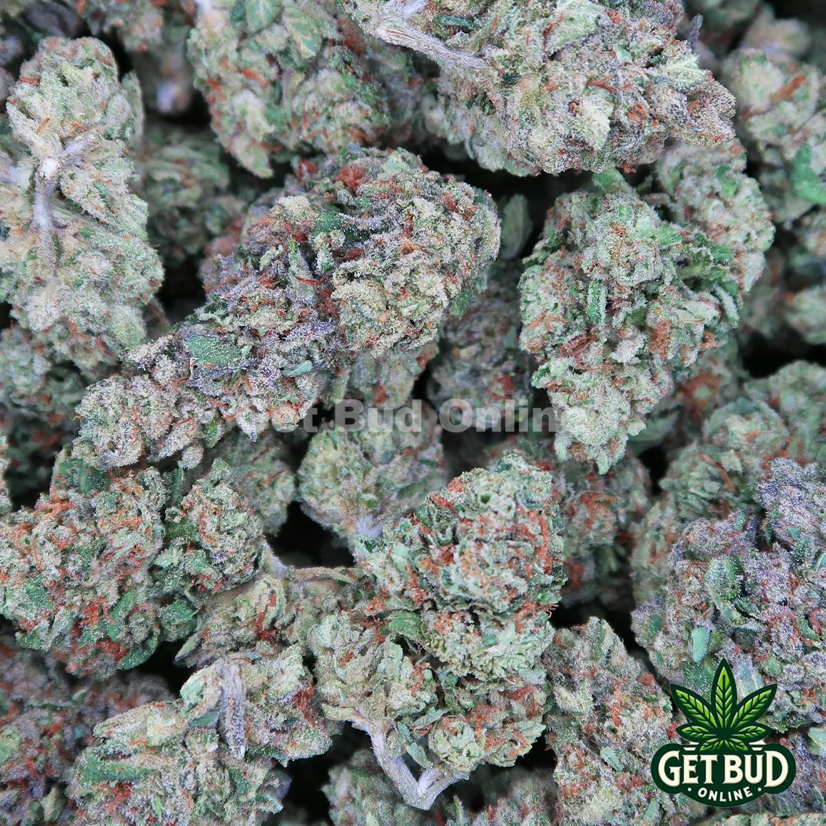 Gelato Cake is an indica dominant hybrid strain (75% indica/25% sativa) created through crossing the infamous Gelato #33 X Wedding Cake strains. Famous for its insanely delicious flavor and super relaxing high, Gelato Cake is one bud that every indica lover needs to add to their list. This bud packs a sweet and sour creamy vanilla flavor into each and every toke, accented by rich peppery pine upon exhale. The aroma takes a surprisingly pungent turn, with a gassy overtone that’s accented by sour citrus and sweet cream. The Gelato Cake high isn’t quite as vibrant, with creeping and relaxing effects that are perfect for a late-night treat. You’ll feel a slow build of euphoria hit you first, pulling your mind into a state of pure happiness and ease that’s pretty creative, too. As your mind settles, a relaxing body high will slowly ebb and flow throughout your entire physical form, locking you to the couch and leaving you fully immovable at and ease. This combination does turn sedative, so expect to doze off at some point! With these effects and its super high 20-25% average THC level, Gelato Cake is often said to be perfect for treating chronic pain, insomnia, inflammation, chronic stress or anxiety and cramps or muscle spasms. This bud has dense grape-shaped dark olive green nugs with lots of thin orange hairs and a frosty thick coating of chunky white crystal trichomes.