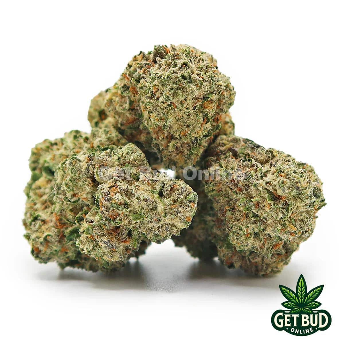 Gelonade is a hybrid strain that leans towards sativa dominance, born from the fusion of Lemon Tree and Gelato #41 strains. If you’re on the hunt for a mouth-watering flavor and a long-lasting, heady high, Gelonade is the answer. This strain delivers a tangy lemon taste that will make your lips pucker, complemented by subtle notes of vanilla cookies upon exhaling. The scent is equally delightful, starting with a sweet vanilla essence that transitions into a sour, citrusy aroma as the buds are broken down and burned. The Gelonade high matches the flavor’s excellence, inducing euphoric effects that are both uplifting and stimulating. Prepare to experience a tingling sensation behind your eyes and at the base of your neck immediately after exhaling, gradually spreading throughout your mind and leaving you feeling refreshed and invigorated. A wave of euphoria follows, enveloping your entire being and instilling a sense of tranquility with the world. Gelonade is a popular choice for individuals seeking relief from conditions like chronic stress, anxiety, depression, fatigue, and pain. The buds themselves are dense, minty green, and shaped like grapes, adorned with fuzzy orange hairs and a layer of frosty, purple-tinged white crystal trichomes.
