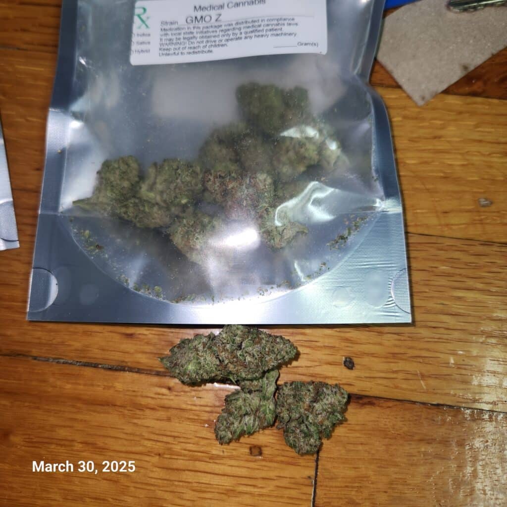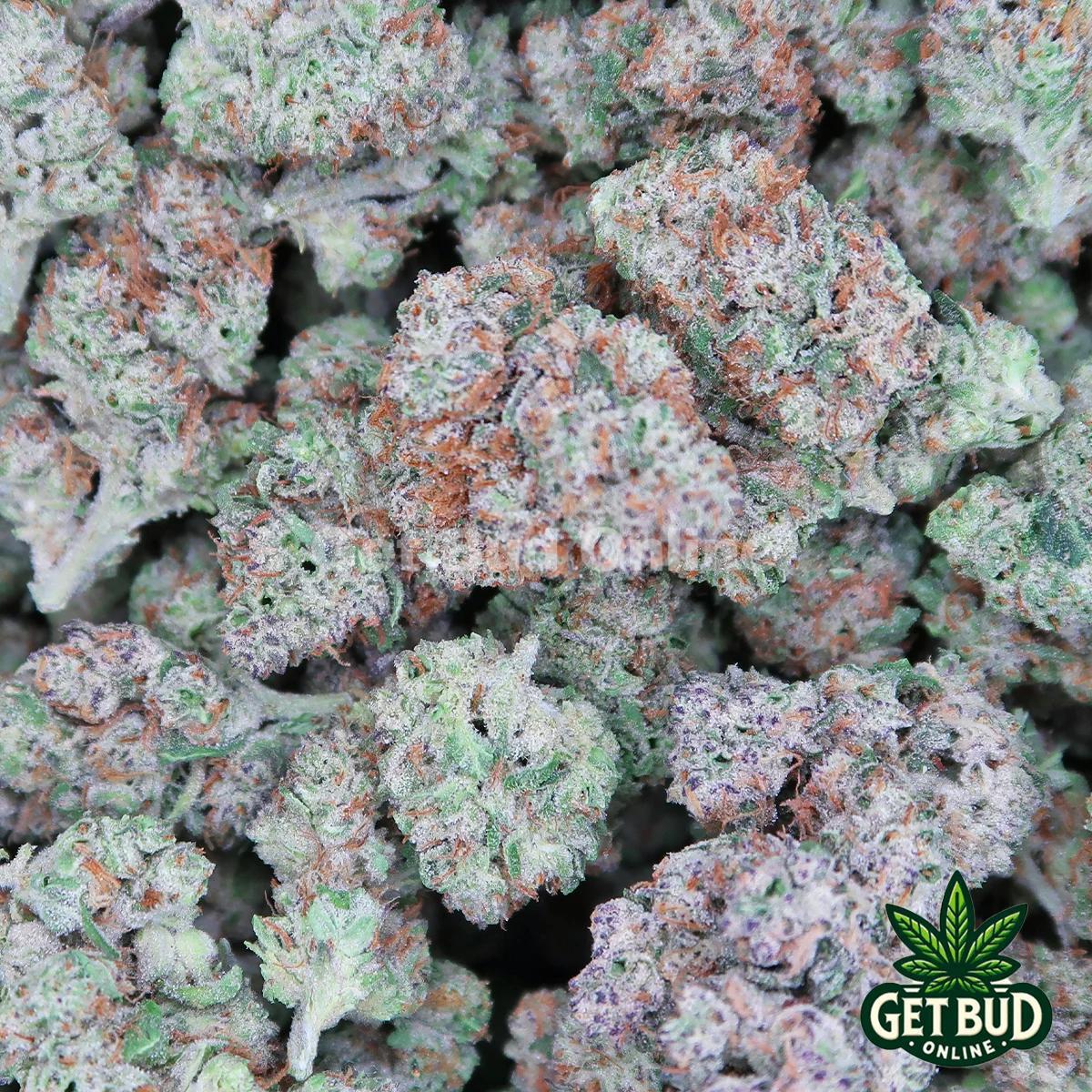 GMO Zkittlez is a unique hybrid strain that maintains a perfect 50/50 balance between indica and sativa. It is the result of crossing the powerful GMO Cookies with Zkittlez and OG Kush. This strain offers an exceptional blend of delightful flavors and strong effects, capable of overwhelming even seasoned users. The experience begins with a gentle onset, gradually filling the mind with an uplifting euphoria that effortlessly dispels any negative or racing thoughts. As this mental elevation deepens, a profound sense of relaxation envelops you, leading to a state of tranquility and blissful calm. Users may also experience a tingling sensation that can be stimulating. GMO Zkittlez is frequently selected for alleviating issues such as insomnia, chronic pain, muscle spasms, and depression. Its flavor profile features a sweet, citrusy candy taste with a subtly fruity exhale that may occasionally take on a chemical note. The aroma mirrors this, combining sweet and fruity elements with an earthy diesel undertone. The buds of GMO Zkittlez are characterized by their long, fluffy mint green appearance, accented with lilac undertones, dark orange hairs, and a generous layer of chunky lilac-tinted white trichomes.