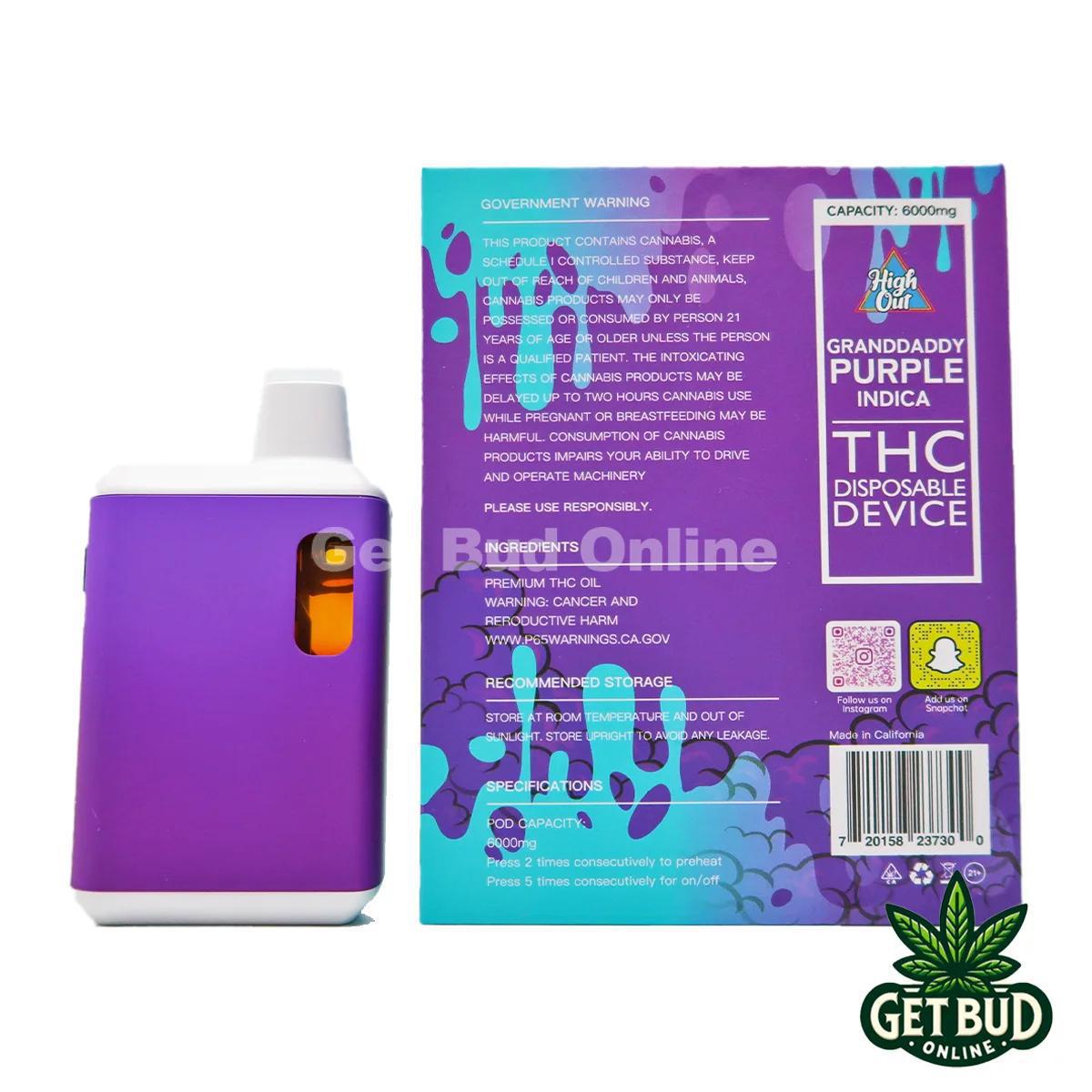 Get High Out – Granddaddy Purple (Indica) Disposable Vape 6000mg 🚬 Online