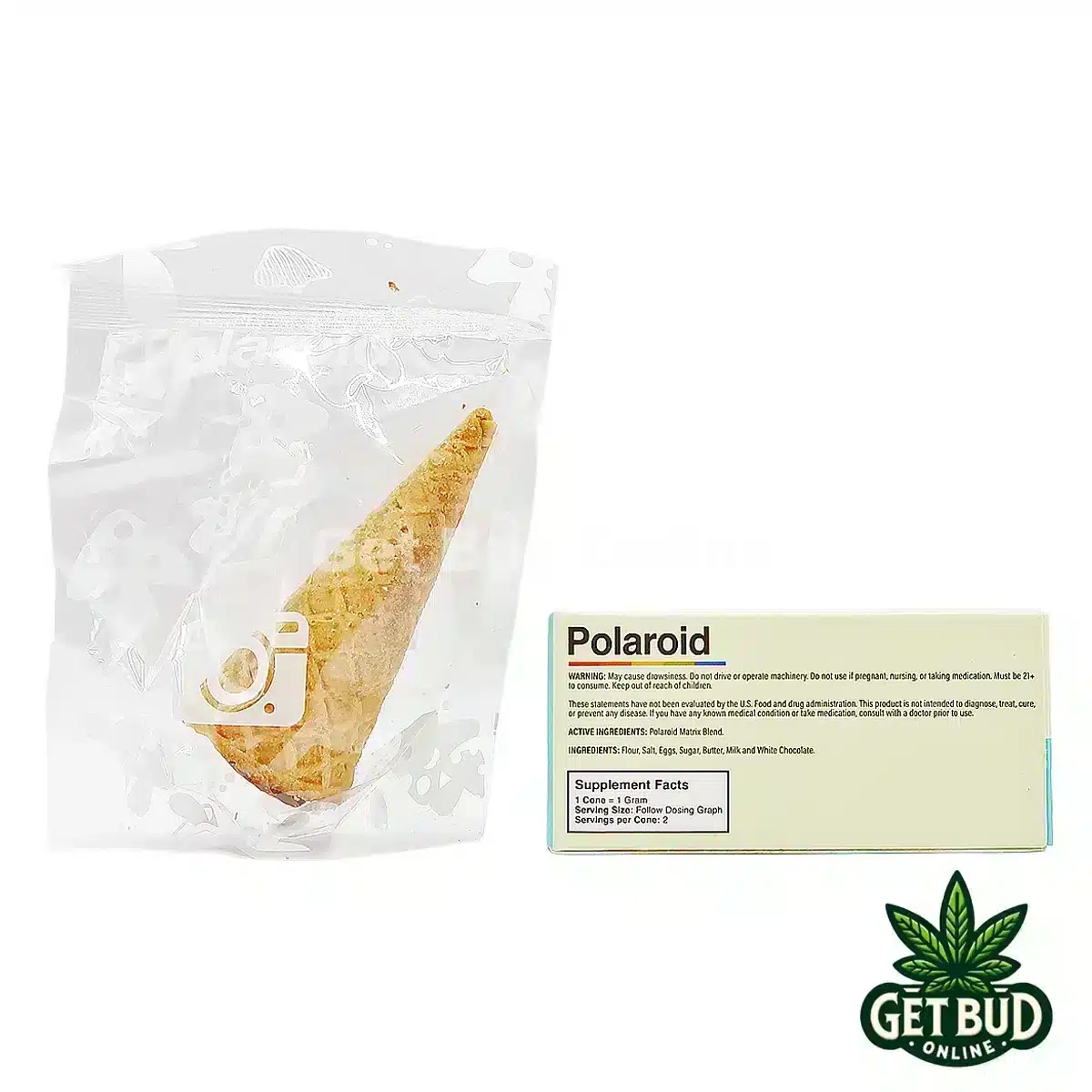 Polaroid 1g Shroom Infused Cone Tips take inspiration from a familiar ice cream treat and transform it into something entirely different — a bold, infused experience with a nostalgic edge. Each piece features a crisp, cone-style shell filled with a smooth, rich chocolate center, delivering a satisfying contrast of texture and flavor in every bite. Designed for a gradual onset and long-lasting effects, these cone tips stand out as a unique alternative to traditional formats. Familiar in feel, elevated in experience — this is not your average edible.