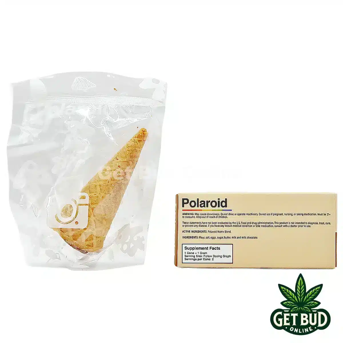 Polaroid 1g Shroom Infused Cone Tips take inspiration from a familiar ice cream treat and transform it into something entirely different — a bold, infused experience with a nostalgic edge. Each piece features a crisp, cone-style shell filled with a smooth, rich chocolate center, delivering a satisfying contrast of texture and flavor in every bite. Designed for a gradual onset and long-lasting effects, these cone tips stand out as a unique alternative to traditional formats. Familiar in feel, elevated in experience — this is not your average edible.