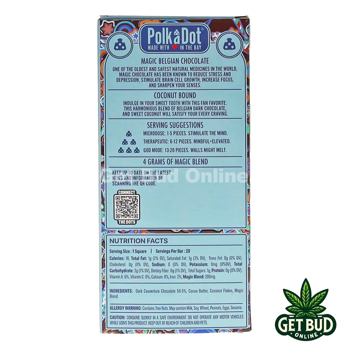 Perfect for both seasoned psychonauts and beginners, Polkadot’s Chocolate Coconut Bound bar delivers a harmonious blend of taste and potency, making every bite an adventure. Treat yourself to a moment of bliss and discover where the journey takes you!