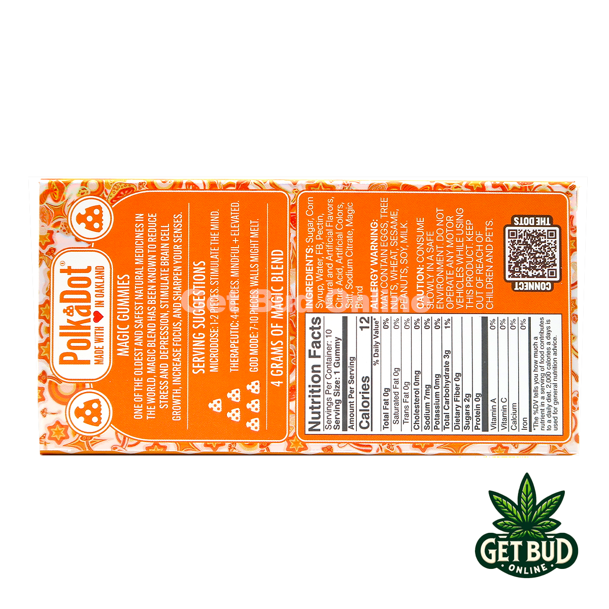 Elevate your taste buds and experience a delightful journey with Polkadot Orange Creamsicle Gummies, a tantalizing blend of flavors and the added benefits of infused Psilocybin. These gummies are meticulously crafted to provide a unique and enjoyable edible experience.