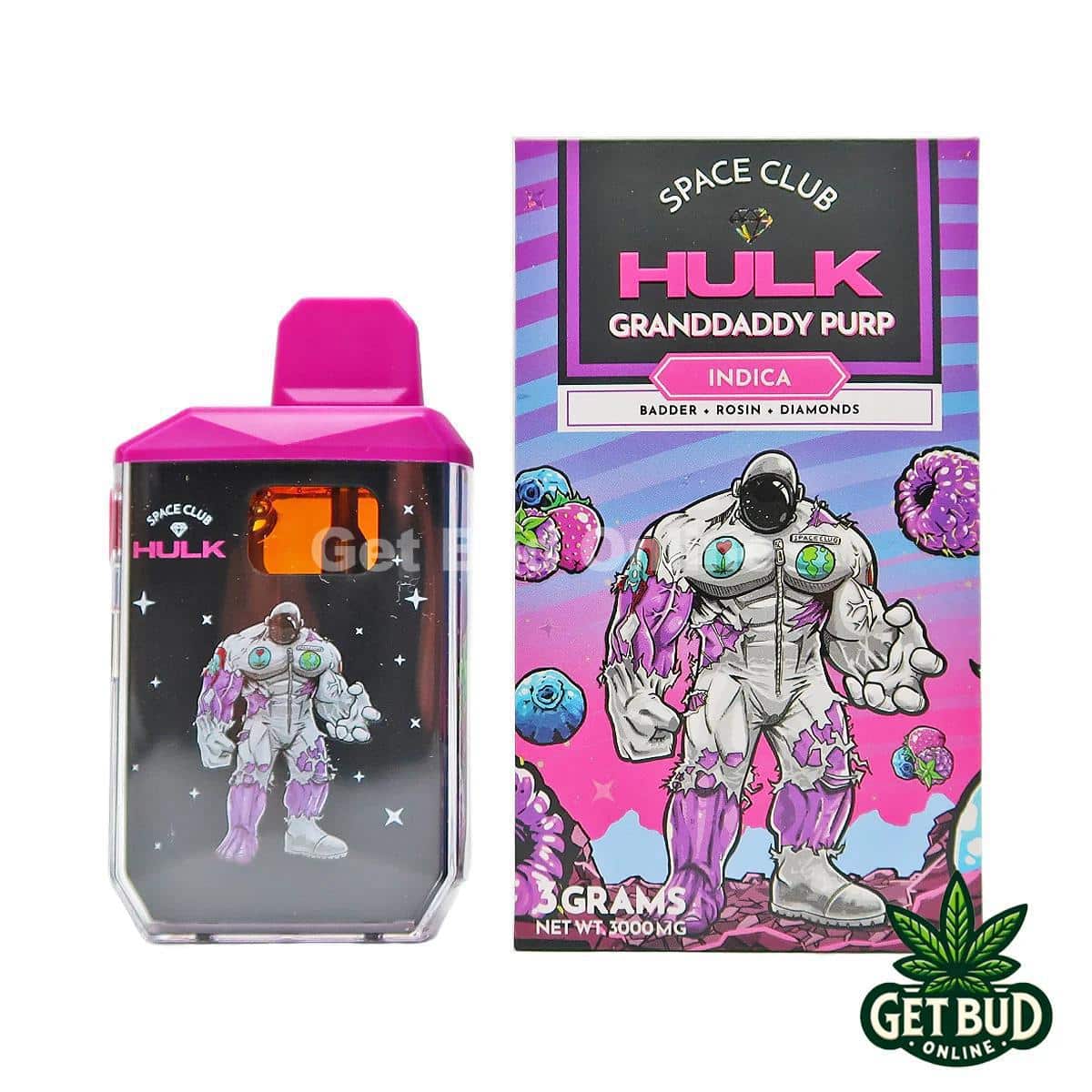Get Space Club 3g Hulk Bar (Badder + Rosin + Diamonds) Disposable Vape – Granddaddy Purp